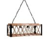 Φωτιστικό οροφής με πλέγμα από μπαμπού και μεταλλική βάση σε μαύρο χρώμα.