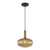 Φωτιστικό οροφής με πλέγμα από μπαμπού και μεταλλική βάση σε μαύρο χρώμα.