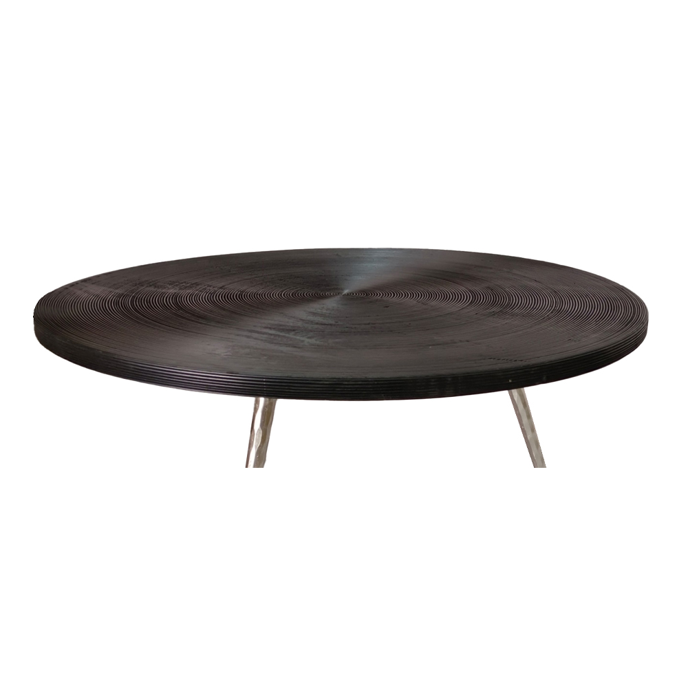 Δώστε μια κομψή και μοντέρνα νότα στο σαλόνι σας με το τραπεζάκι σαλονιού Zen. Διαθέτει μια εντυπωσιακή μαύρη ξύλινη επιφάνεια, που προσφέρει μια κομψή και σύγχρονη αίσθηση. Η επιφάνεια είναι ιδανική για την τοποθέτηση διακοσμητικών αντικειμένων ή βιβλίων, δίνοντας έναν εκλεπτυσμένο τόνο στον χώρο σας. Ο σκελετός του τραπεζιού είναι κατασκευασμένος από μεταλλικό ασημί υλικό, που προσφέρει ανθεκτικότητα και σταθερότητα. Το ασημί φινίρισμα του μεταλλικού σκελετού δημιουργεί μια κομψή αντίθεση με τη μαύρη ξύλινη επιφάνεια, προσθέτοντας έναν αέρα πολυτέλειας και μοντέρνας αισθητικής.