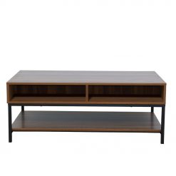 Το τραπεζάκι σαλονιού Zuma ξεχωρίζει για το μοναδικό του design και την πολυλειτουργικότητά του. Η καρυδί μελαμίνη προσφέρει ζεστασιά και διαχρονικό στυλ, ενώ τα δύο μαύρα ανάγλυφα συρτάρια δίνουν μια ξεχωριστή αισθητική πινελιά, προσφέροντας ταυτόχρονα πρακτικό αποθηκευτικό χώρο. Τα δύο μικρά ράφια στο πίσω μέρος και το μεγάλο απο κάτω, παρέχουν επιπλέον χώρο για αντικείμενα, κάνοντάς το ιδανικό για την οργάνωση του σαλονιού σας. Με τα μαύρα μεταλλικά πόδια του, το Zuma συνδυάζει την κομψότητα με τη στιβαρότητα, προσφέροντας ένα εντυπωσιακό και ανθεκτικό κομμάτι για κάθε μοντέρνο εσωτερικό χώρο.